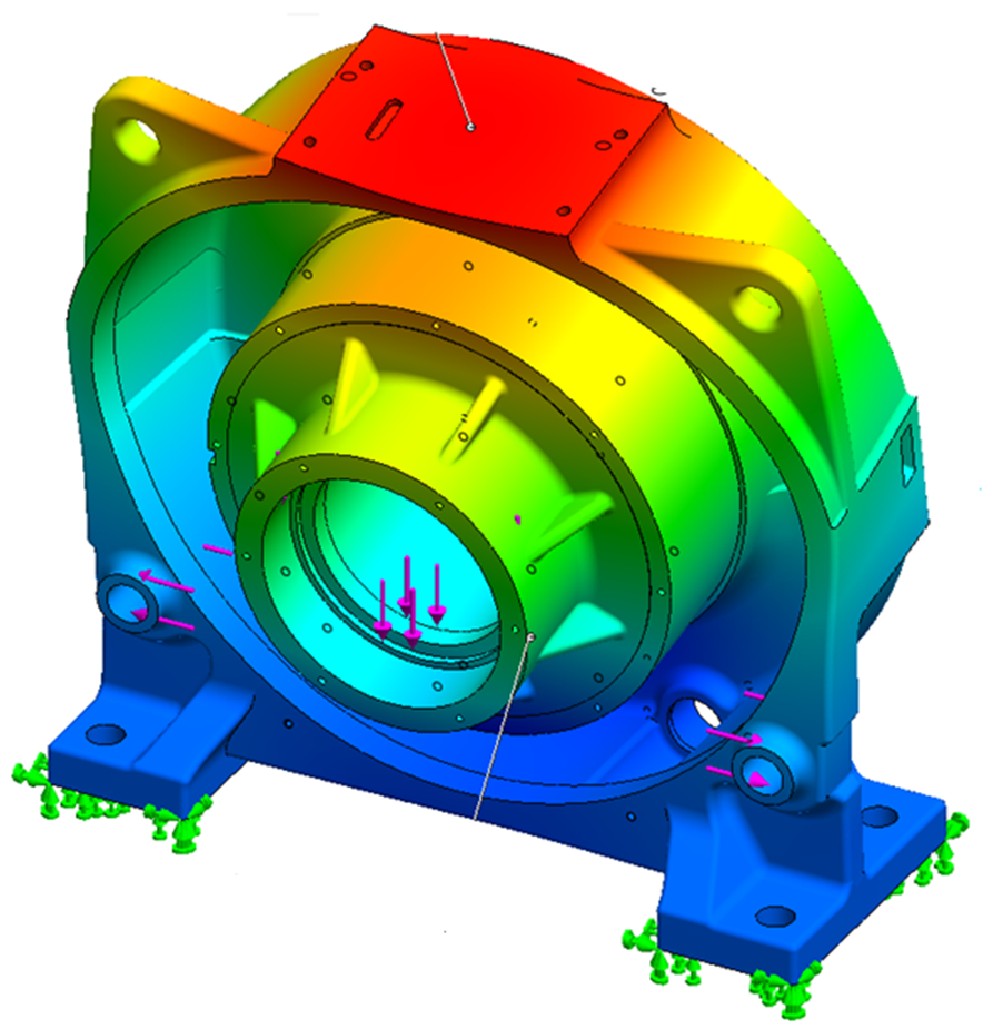 Wysokie bezpieczeństwo i niezawodność to podstawowe wymagania i atrybuty wind, a ludzie mają jeszcze wyższe wymagania co do bezpieczeństwa i niezawodności wind metra. Dlatego przeprowadzamy szczegółową analizę wytrzymałości mechanicznej (rysunek 7) i przedstawiamy specjalne wymagania i ulepszenia w zakresie nośności mechanicznej i skuteczności hamowania. Odpowiednio zwiększono współczynniki bezpieczeństwa dotyczące nośności kluczowych elementów mechanicznych, takich jak podstawa maszyny, piasta koła, koło napędowe i wał.