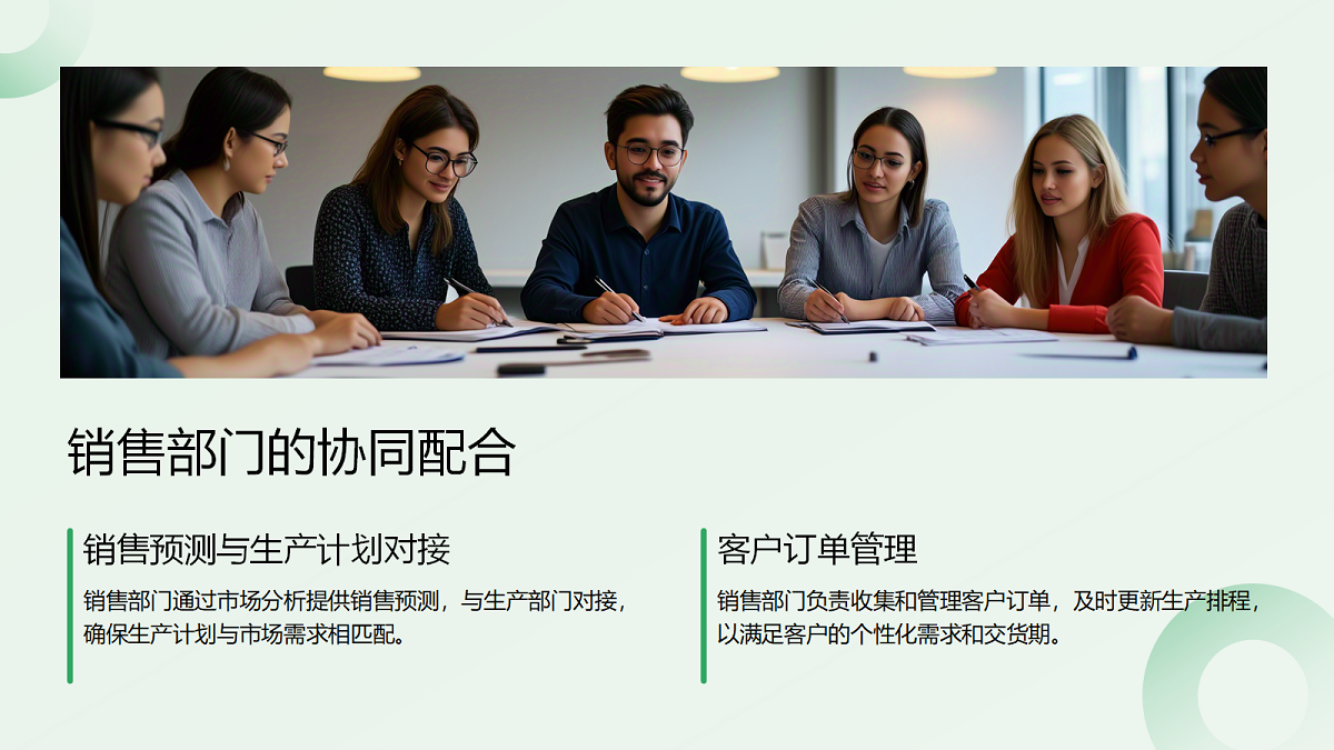 Wdrażanie zrównoważonego harmonogramowania produkcji jest nierozerwalnie związane ze współpracą takich działów jak sprzedaż, inżynieria, zarządzanie łańcuchem dostaw, zakupy, produkcja i logistyka. Ta współpraca leży u podstaw logiki szybkiego reagowania, a kluczowy rdzeń szybkiego reagowania leży w przekazywaniu informacji zwrotnych i komunikacji, a także w ciągłym, dogłębnym doskonaleniu cyklu PDCA (Planuj – wykonaj – sprawdź – działaj).