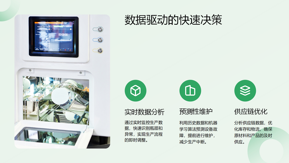 • Szybkie podejmowanie decyzji w oparciu o dane: podejmuj szybkie decyzje dzięki analizie danych w czasie rzeczywistym, konserwacji predykcyjnej i optymalizacji łańcucha dostaw.